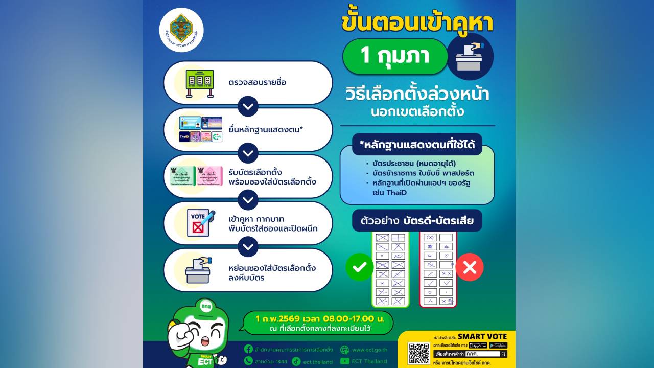 พีเพิล ยูนิตี้ นิวส์ 30 มกราคม 2569 1 ก.พ. 69 ผู้ที่ลงทะเบียนเลือกตั้งล่วงหน้านอกเขตเลือกตั้ง อย่าลืมออกมาใช้สิทธิ!