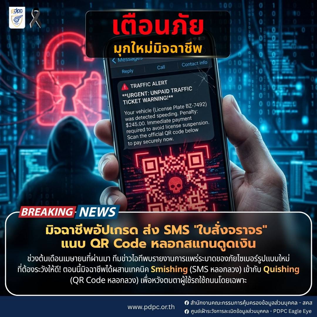 ตอนนี้มิจฉาชีพได้ผสานเทคนิค Smishing (SMS หลอกลวง) เข้ากับ Quishing (QR Code หลอกลวง) เพื่อหวังตบตาผู้ใช้รถใช้ถนนโดยเฉพาะ