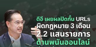 ดีอี เผยผลปิดกั้น URLs ผิดกฎหมาย 3 เดือน 2.2 แสนรายการ พนันออนไลน์อันดับ 1