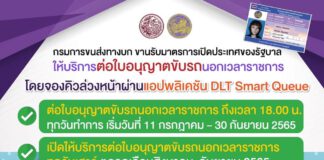 เริ่มแล้ว! ต่อใบขับขี่นอกเวลาราชการได้ถึง 6 โมงเย็น และเพิ่มให้บริการวันเสาร์ตลอด 2 เดือน