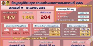 อุบัติเหตุสงกรานต์ 5 วัน เกิดเหตุ 1,478 ครั้ง บาดเจ็บ 1,452 คน ตาย 204...