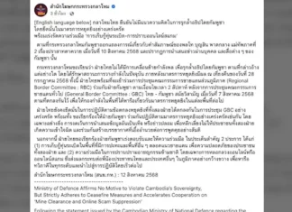 กลาโหมไทย แจงไม่มีแนวความคิดรุกล้ำอธิปไตยกัมพูชา